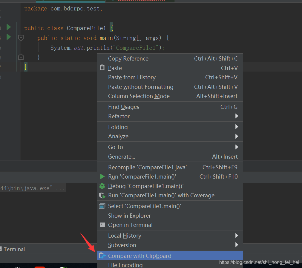 在写代码的过程中,经常需要比较两个代码文件的内容差异,很多人会想到下载一个文件比较工具来比较,其实idea就有比较的功能,而且非常方便,下面就来介绍下如何使用