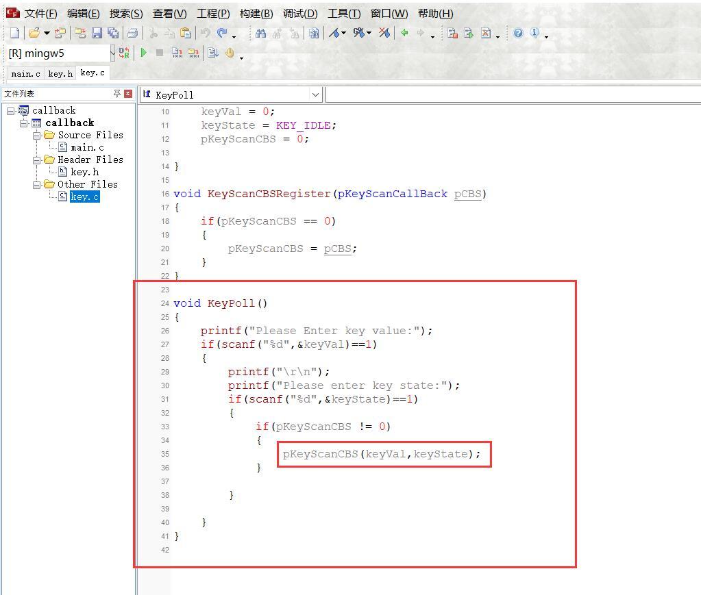 然后把这个函数名字直接复制给KeyScanCBSRegister函数的形参就可以了。