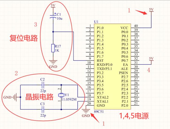 而单片机要运作,同样也需要一些前置条件,比如说电源、复位电路、晶振电路。