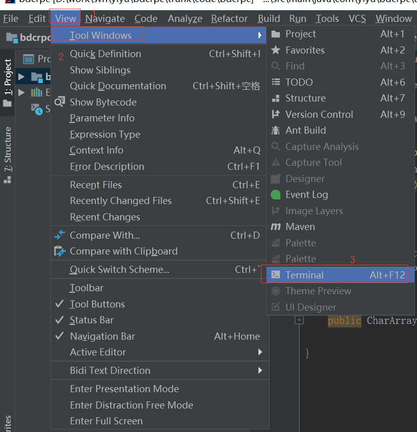 方法二:在IDEA中点击view→tool window→Terminal即可开启