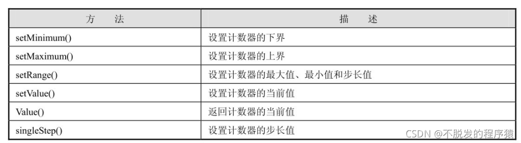 QSpinBox是一个计数器控件,允许用户选择一个整数值,通过单击向上/向下按钮或按键盘上的上/下箭头来增加/减少当前显示的值,当然用户也可以输入值。