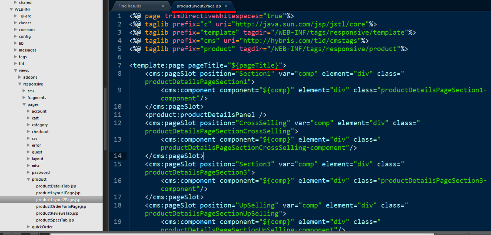 即可找到product明细页面实现的jsp文件完整路径如下:C:\Hybris\6.5.0.0.23546\hybris\bin\ext-template\yacceleratorstorefront\web\webroot\WEB-INF\views\responsive\pages\product\productLayout2Page.jsp: