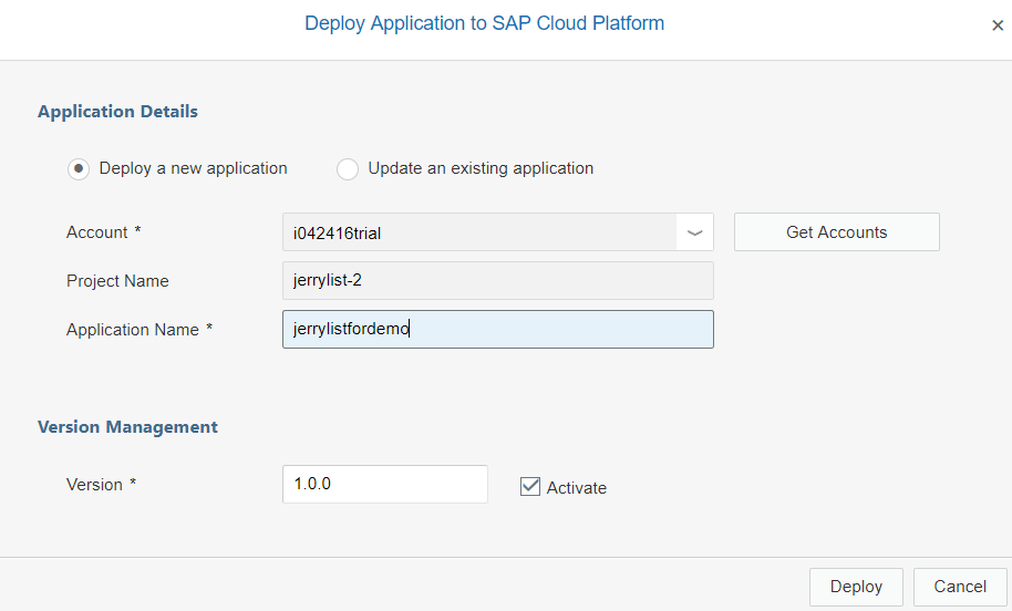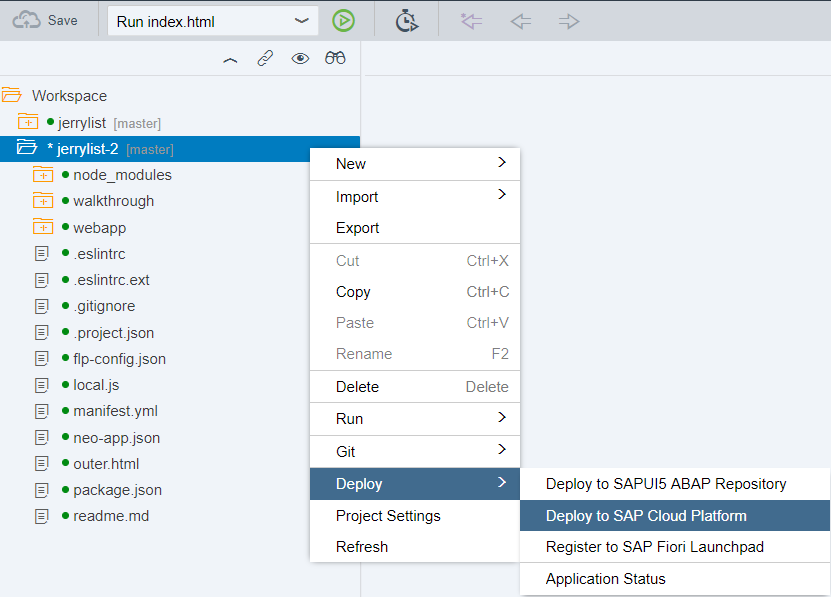 将该应用从git的workspace部署到SAP cloud platform上:
