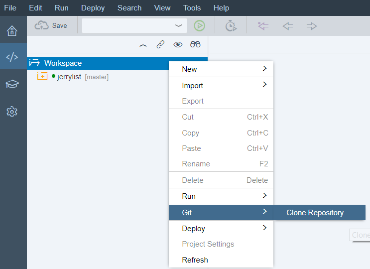 进入workspace,选择Git->Clone Repository:
