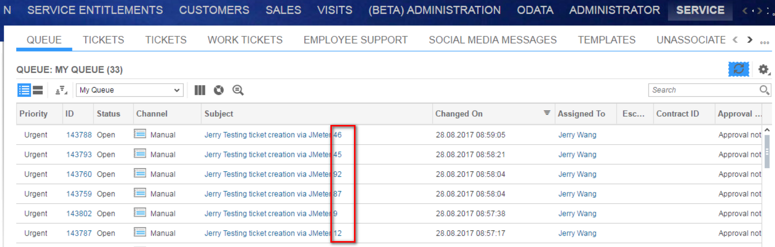 最后使用jMeter成功创建的Service Request在系统显示如图: