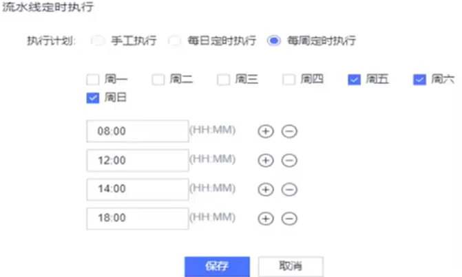 - 每周定时执行模式只允许选择星期几,不能选择具体时间点
