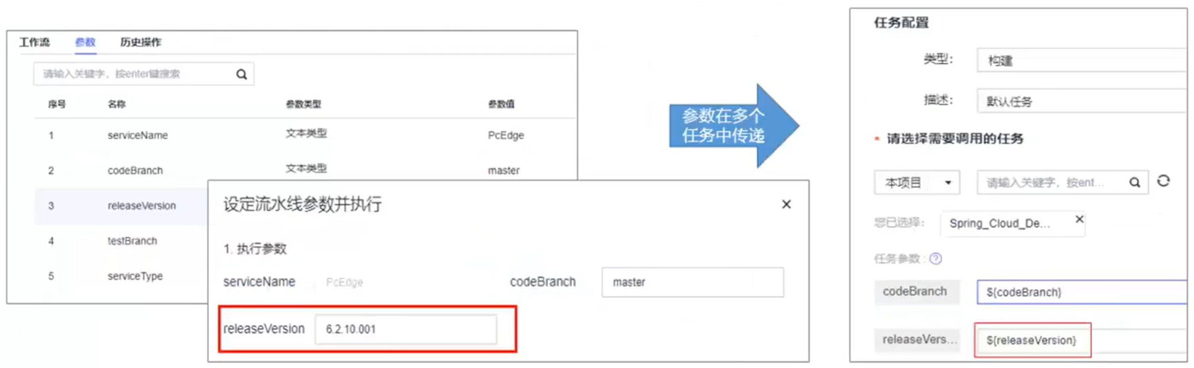 - 流水线参数传递至各任务,实现产物的价值流动