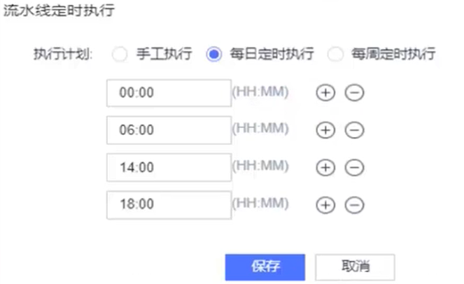 - 每日定时模式允许选择每日多个时间点执行流水线
