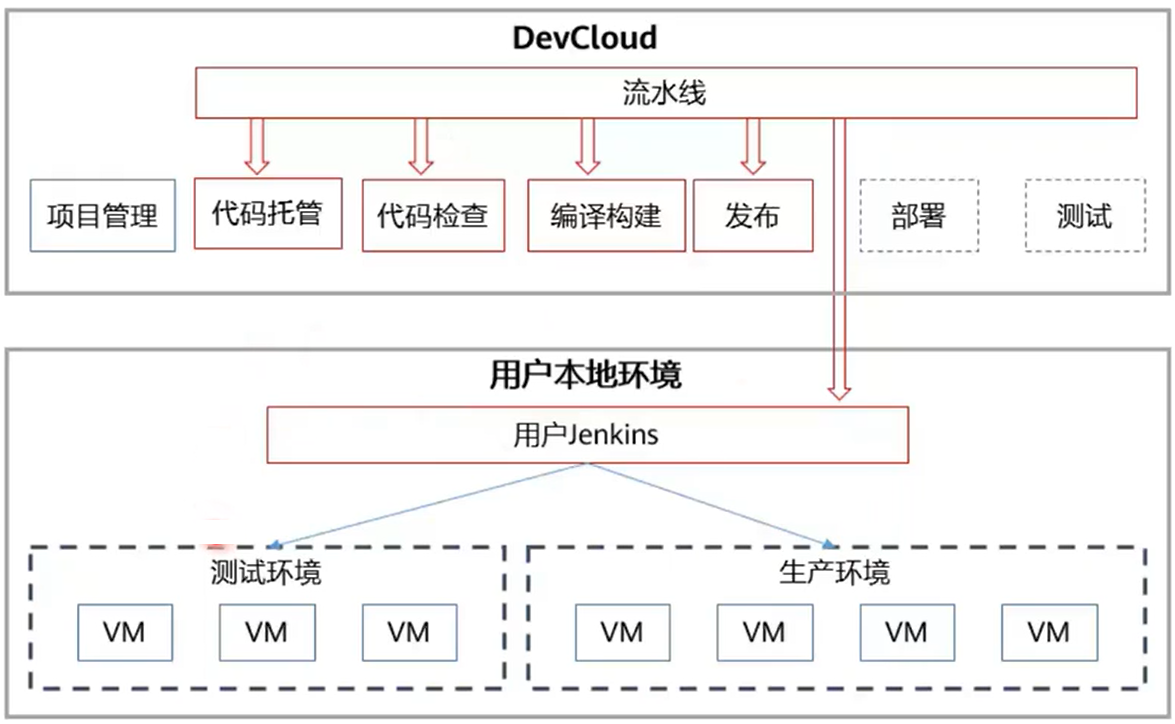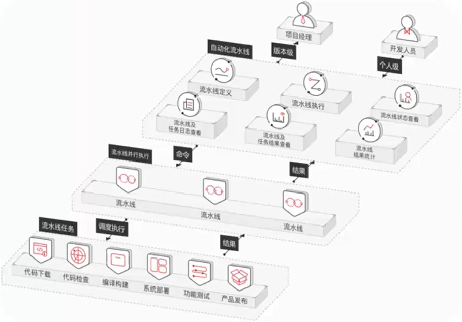 - 用户提交代码后,自动触发流水线执行编译构建、代码检查等任务