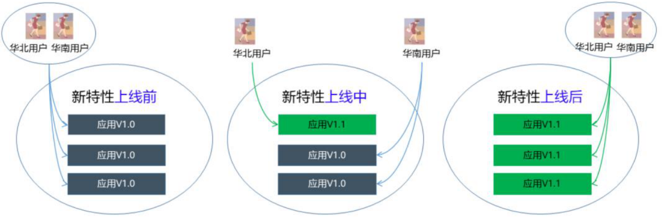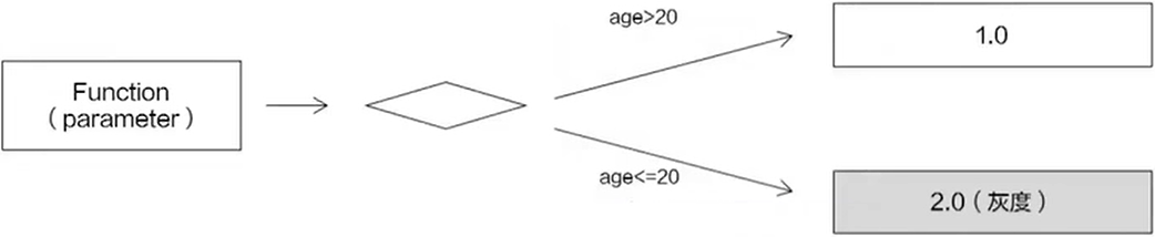 - 这里我们会对请求的某一个参数进行控制,比如我们将年龄大于 20 岁的保留 1.0 版本,年龄小于 20 岁的使用 2.0 版本(即灰度版本),当在年龄小于 20 的群里里面发现应用可以正常运行的时候,再把所有的 1.0 版本的应用升级到 2.0 版本