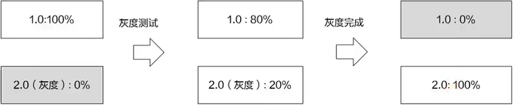 - 比如我们将 80% 的流量固定在 1.0 版本,将 20% 的流量灰度到 2.0 版本,这样我们在 20% 的流量发现灰度的版本可以正常运行起来的时候,我们再把所有的 V1.0 升级到 V2.0