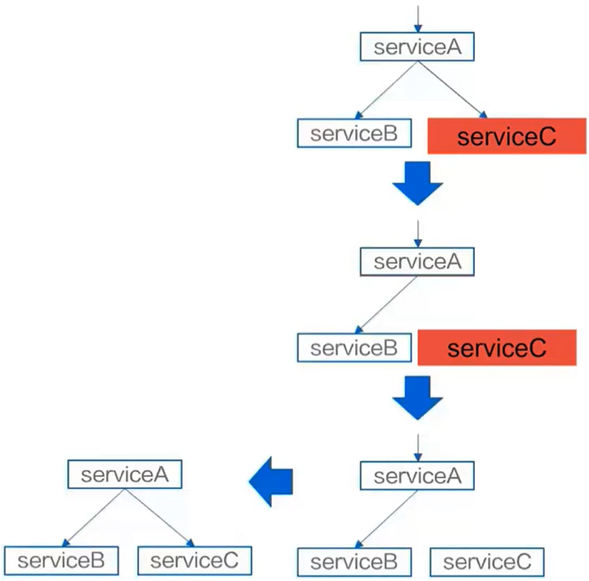 - 举个例子:我们在实现一个功能的时候,涉及到一些服务之间的调用,在定位问题的时候,我们并不知道这一个问题它出现在调用链中的哪一个服务里面,或者说如果这个调用里面的某一个服务出现了问题,怎么样能够自动地将这个问题所带来的危害降低为零(或降到最小)
