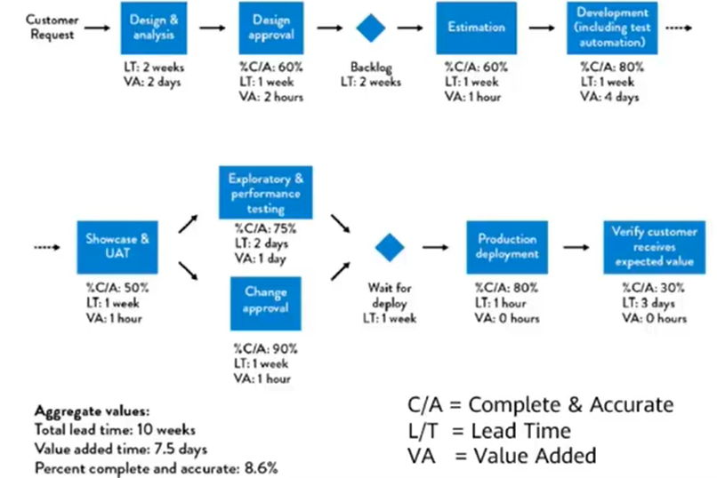 - LT:Lead Time,是一个过程从发起到执行完毕之间间隔的时间。在精益生产中为缩短和预测价值流中的前置时间。可以采用这些方式:减小批量尺寸、减少在制品、避免返工、确保不把次品传递到下游、持续不断的全局优化