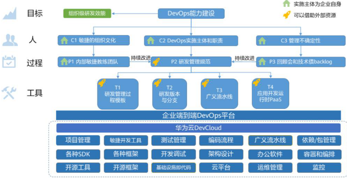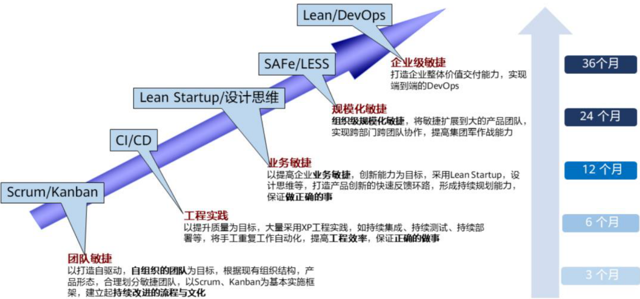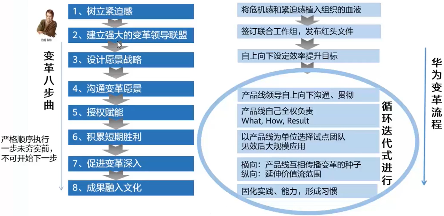 - 企业规模化 DevOps 转型怎么实现:我们采用变革八步曲结合华为变革流程,通过多循环迭代,最终完成企业 DevOps 转型