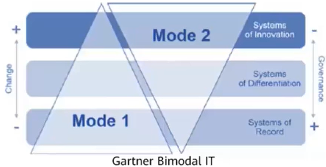 - Gartner 双模 IT:SOR 侧重于做得正确,SOI 侧重于做得快速