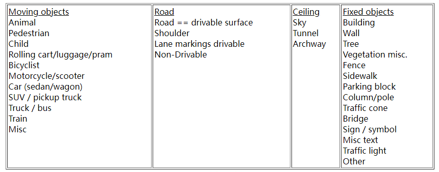CamVid数据集提供32个ground truth语义标签,将每个像素与语义类别之一相关联。该数据集解决了对实验数据的需求,以定量评估新兴算法。数据是从驾驶汽车的角度拍摄的,驾驶场景增加了观察目标的数量和异质性。