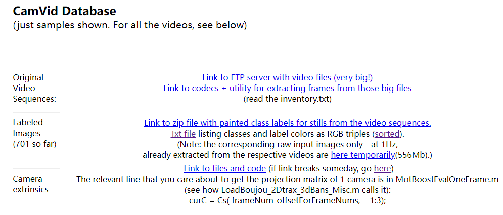 CamVid 数据集是由剑桥大学公开发布的城市道路场景的数据集。CamVid全称:The Cambridge-driving Labeled Video Database,它是第一个具有目标类别语义标签的视频集合。