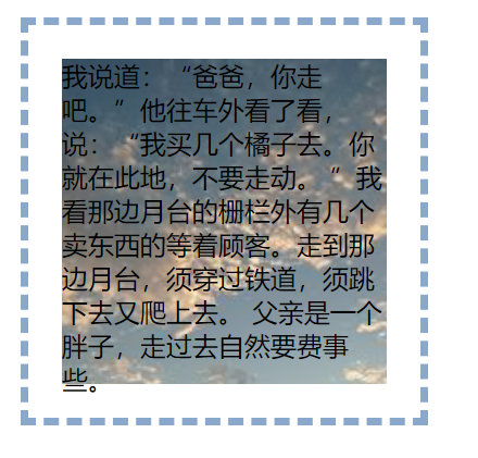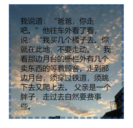 效果图是这样子的,这里先不给解释为什么是这样子的效果。等大家看完四个值的例子,这里就很简单了。