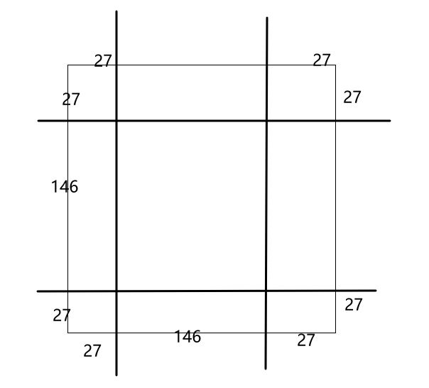 这里我们假设border-image(或者说是border-image-slice)属性三等分,把图片分成一个九宫格。这张图是8181尺寸的,所以正好是每个菱形占据一个角。尺寸是2727。
