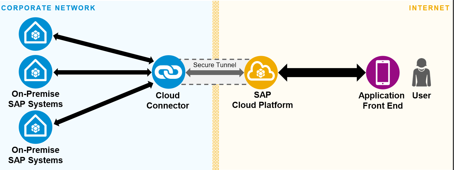 为了确保Internet应用能够访问Corporate Network系统里的服务,我们需要用到SAP Cloud Connector, 作为一个沟通桥梁。