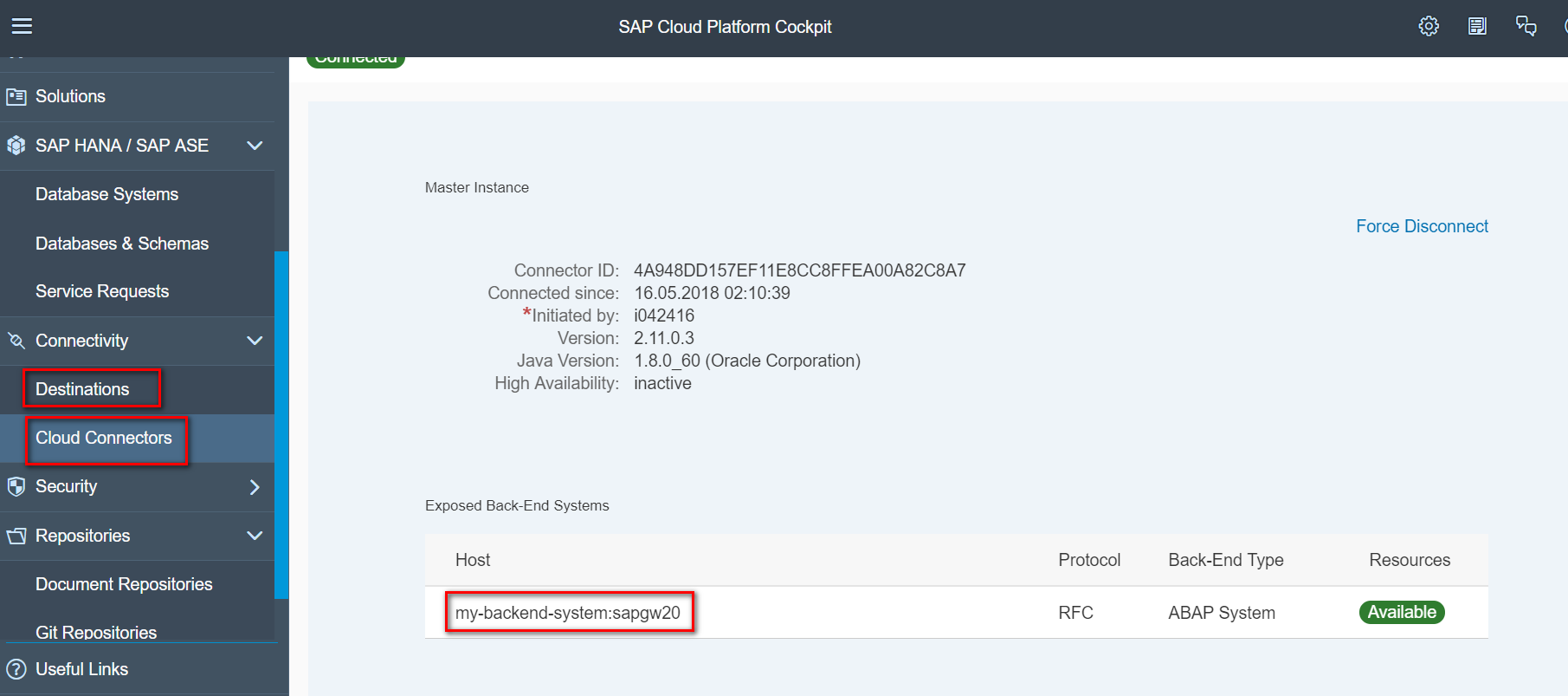 在SAP云平台上完成必要配置,同Cloud Connector建立连接。