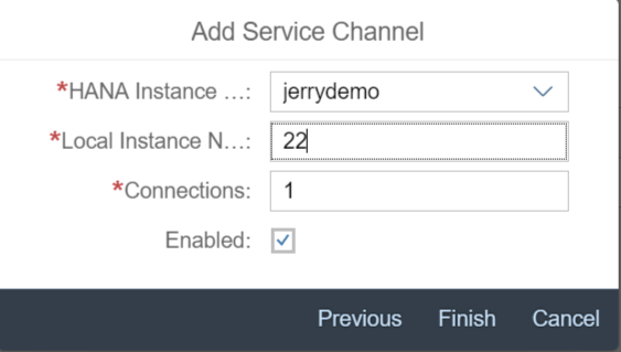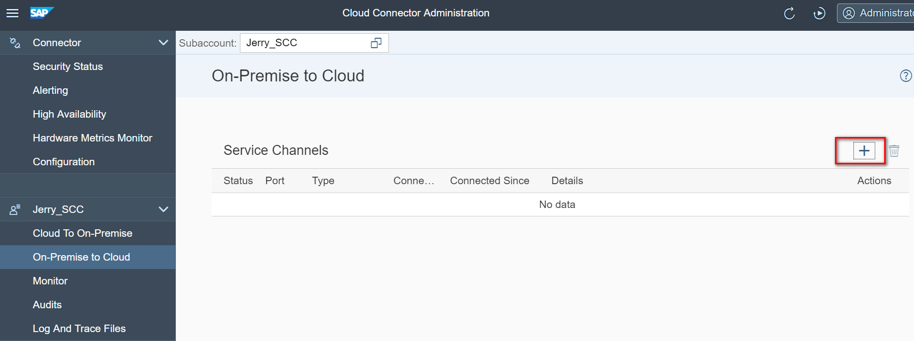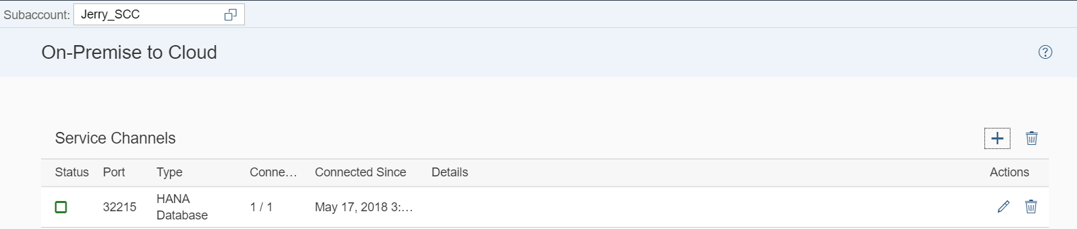 在SAP云平台创建另一个HANA数据库实例,取名为jerrydemo。然后登录Cloud Connector,点击标签On-Premise to Cloud,创建一个新的Service Channels:
