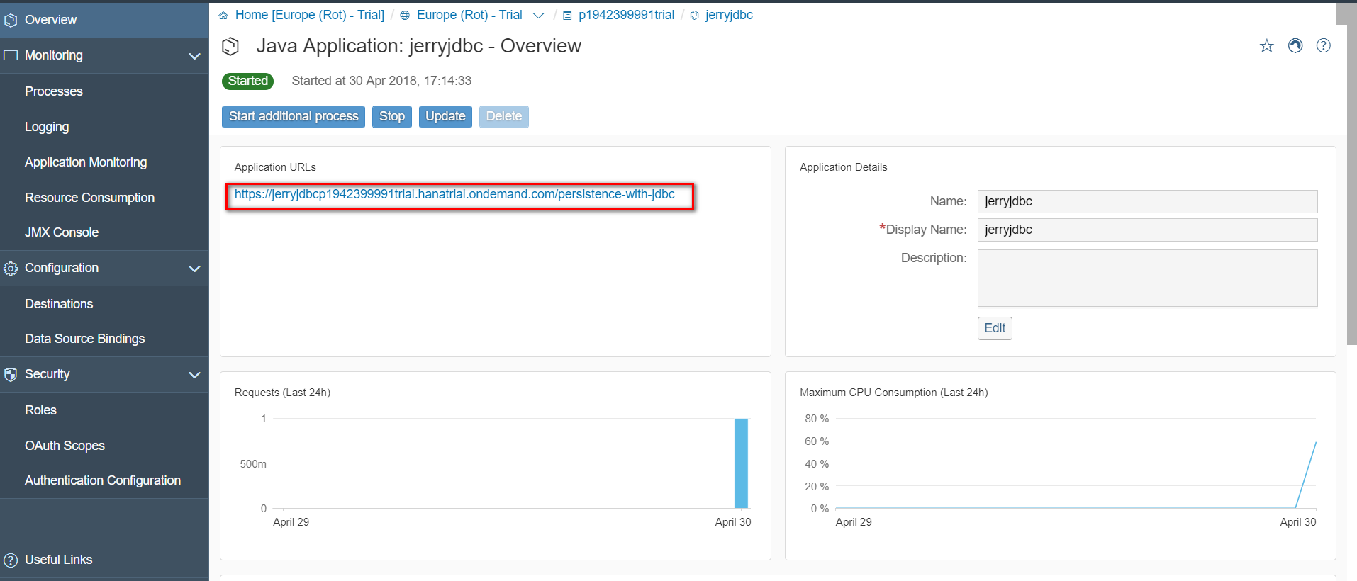 将该应用部署到SAP云平台,应用名为jerryjdbc。