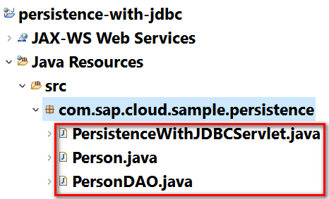 顾名思义: DAO - Data Access Object。通过JDBC连接HANA数据库实例,创建名为T_PERSONS的数据库表,已经往表里插入数据的逻辑都写在这个DAO类里。 -