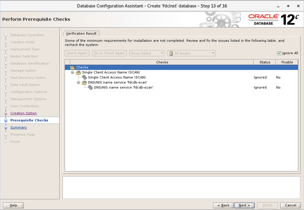 ##怀疑可能是oracle用户缺少asmadmin组,授予组之后,点击ignore