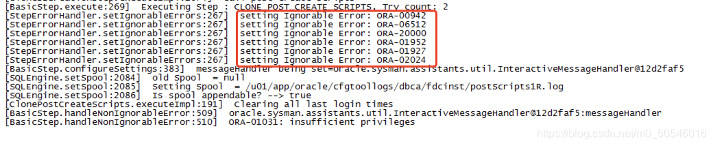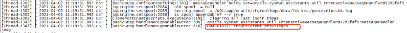 报错:[BasicStep.handleNonIgnorableError:510] ORA-01031: insufficient privileges