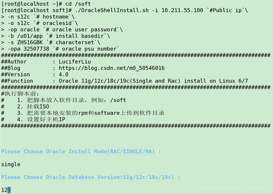 注意:可通过./OracleShellInstall.sh --help查看命令帮助