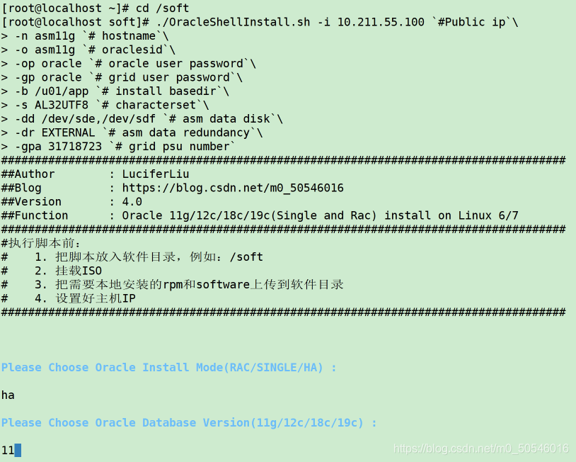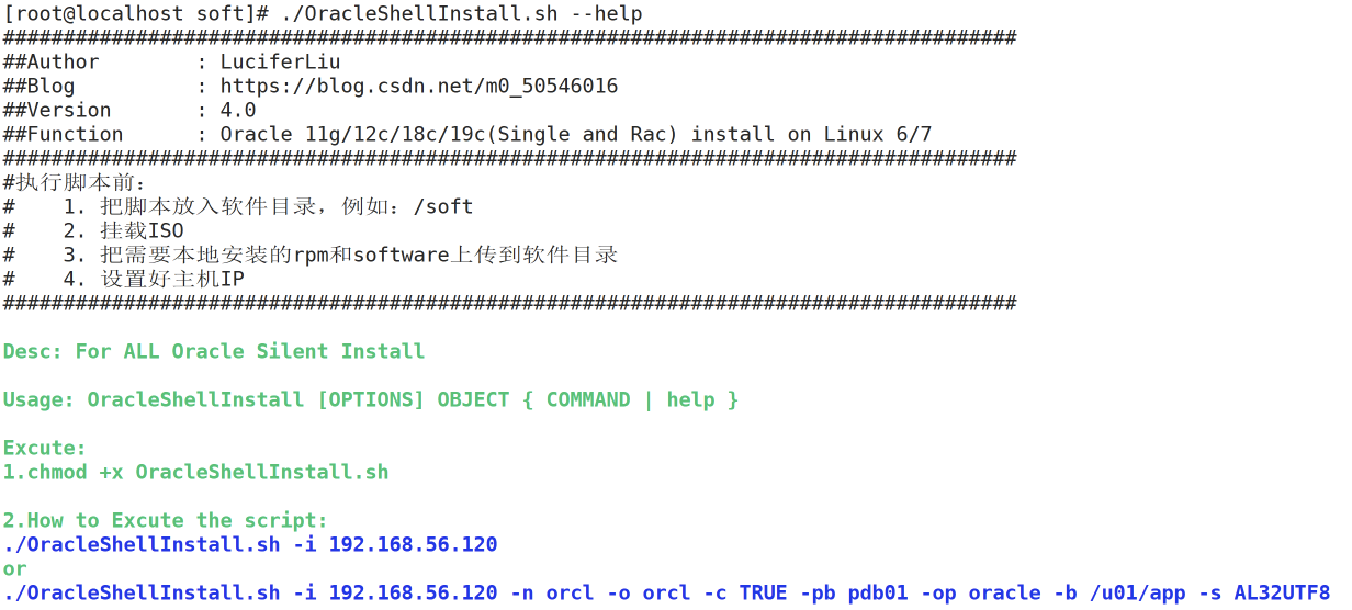 注意:可通过./OracleShellInstall.sh --help查看命令帮助