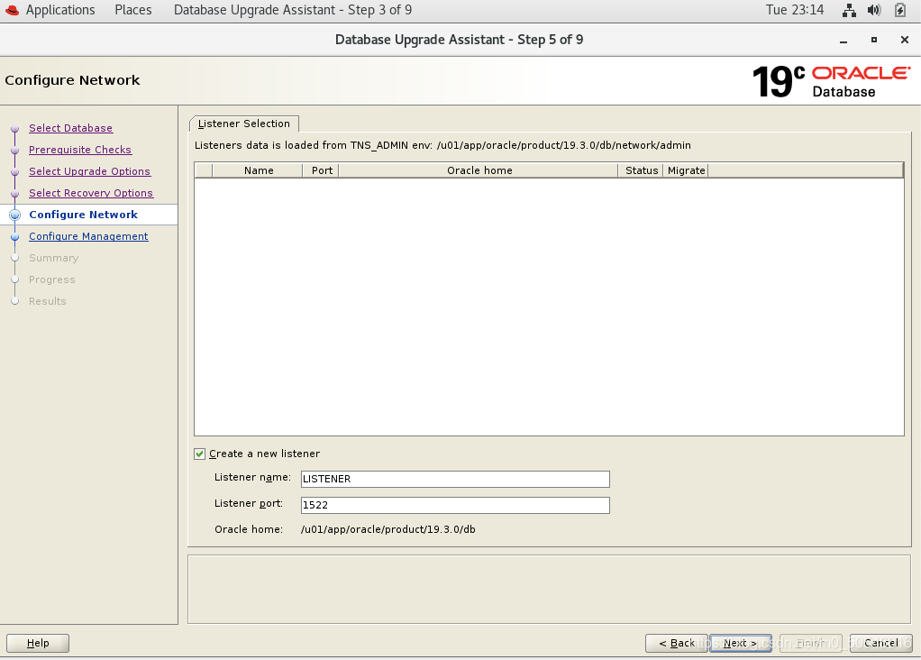 提前创建19C监听,端口为1522,升级完之后记得改回1521,点击下一步。