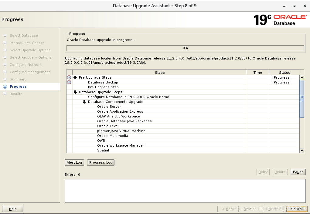 参考文章:使用DBUA升级 Oracle 11.2.0.4到Oracle 19C的问题记录