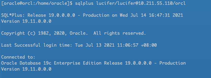 sqlplus lucifer/lucifer@10.211.55.110/orcl