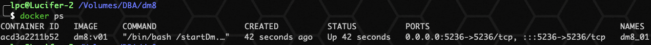 docker run -itd -p 5236:5236 --name dm8_01 dm8:v01 /bin/bash /startDm.sh