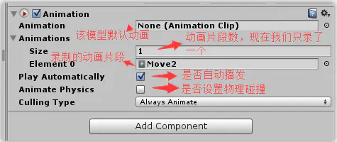 Legacy动画系统使用的是Animation组件,直接对动画片段进行操作