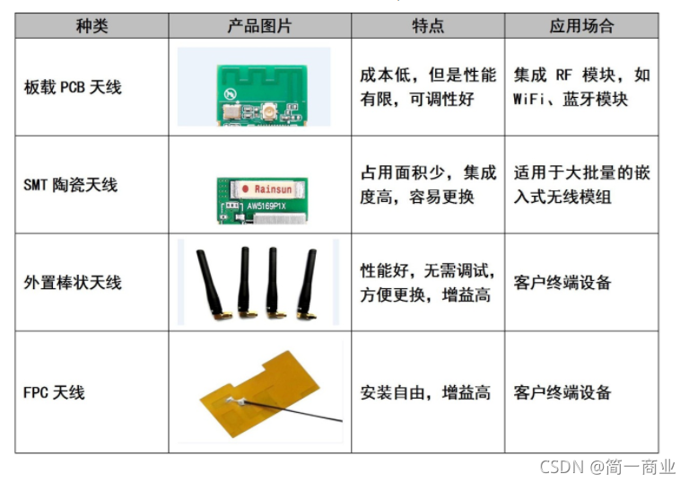 常用的有陶瓷天线,占用面积少,集成度高,容易更换,适用于对空间要求小的产品,但是该类型天线价格稍贵且带宽偏小。