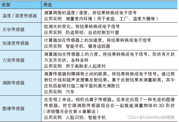 传感器是一种装置,它的用途在于检测周边环境的物理变化,将感受到的信息转换成电子信号的形式输出。人类用五种感官来感知环境的变化,设备则用传感器来感知。