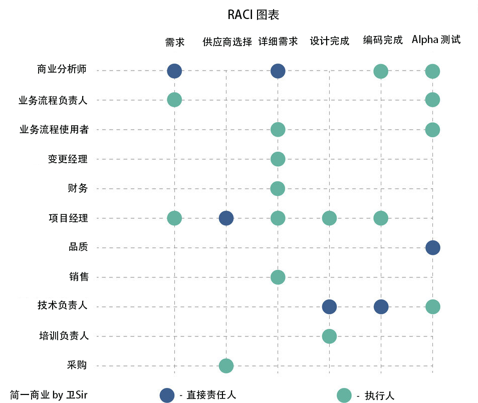 - 在纵轴上标识关键角色(或关键个人),包括项目经理;