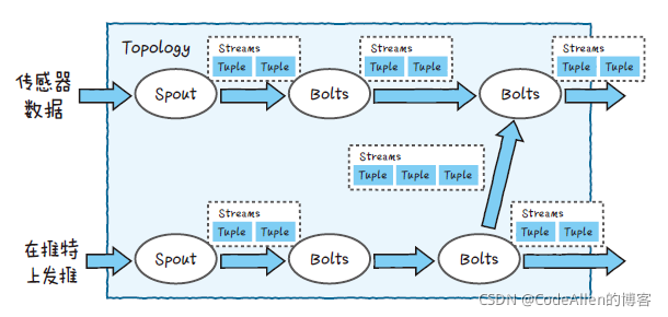 用Storm 处理的数据叫作Tuple,这个Tuple 的流程叫作Streams。
