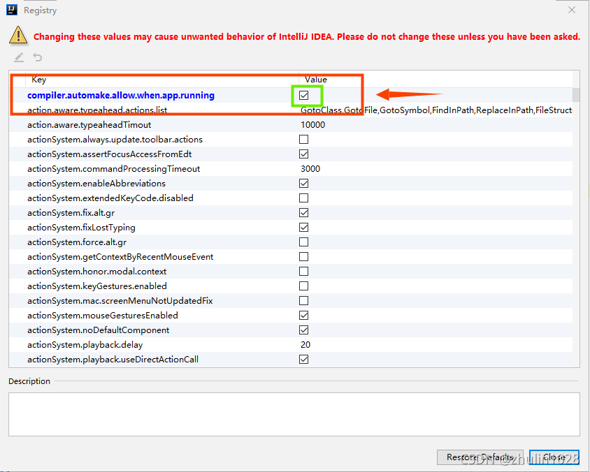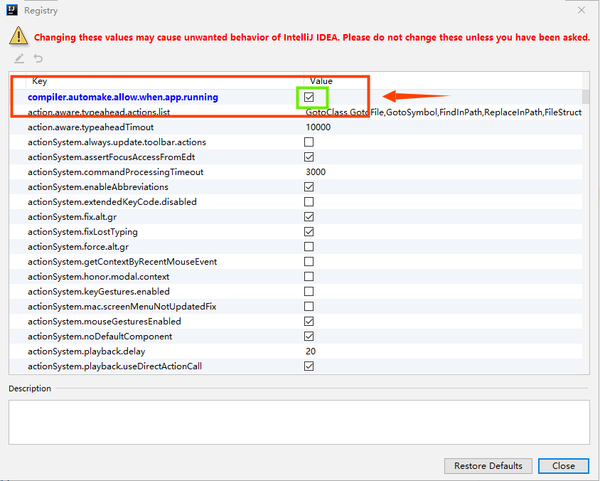 第三步: 按住ctrl + shift +alt + / 选择Registry,按照下图框选打上对钩
