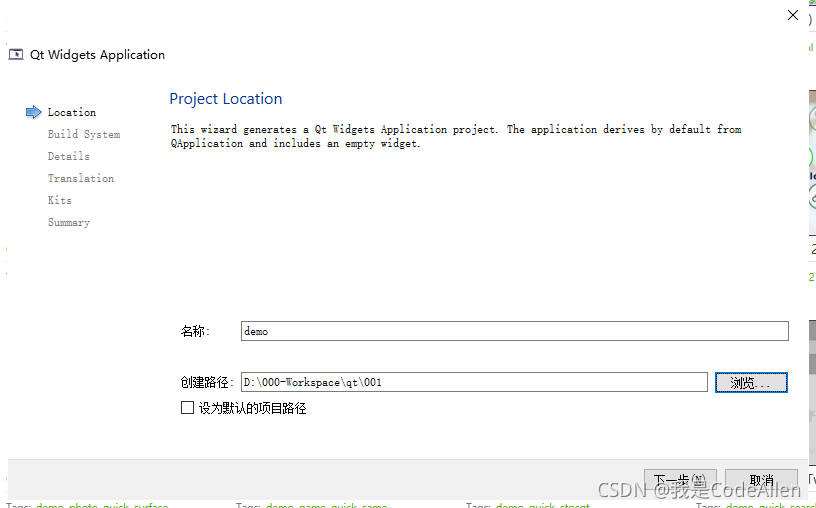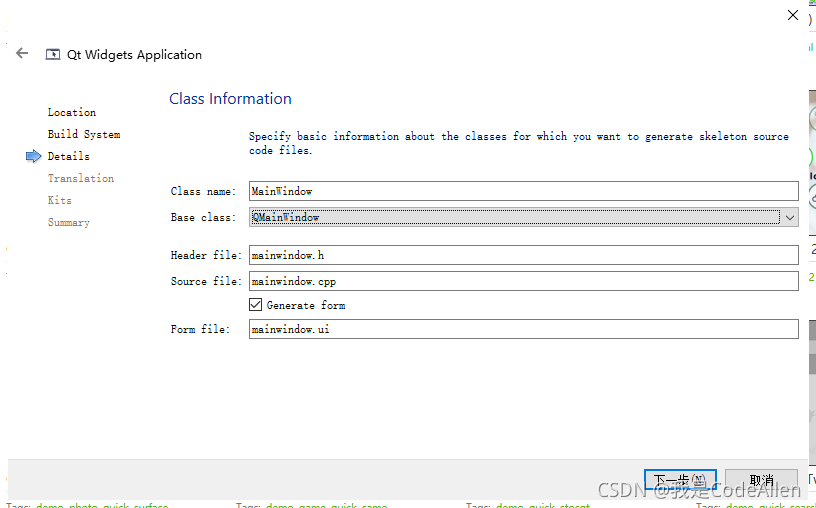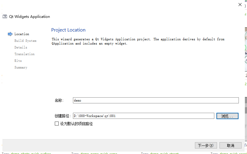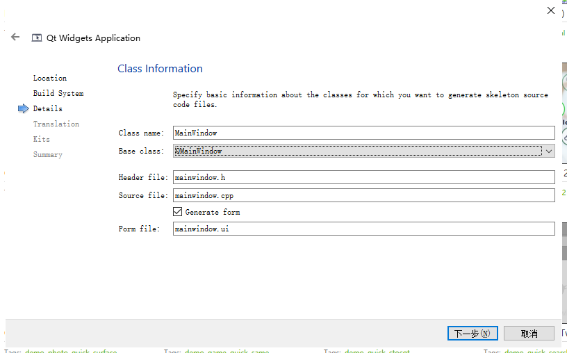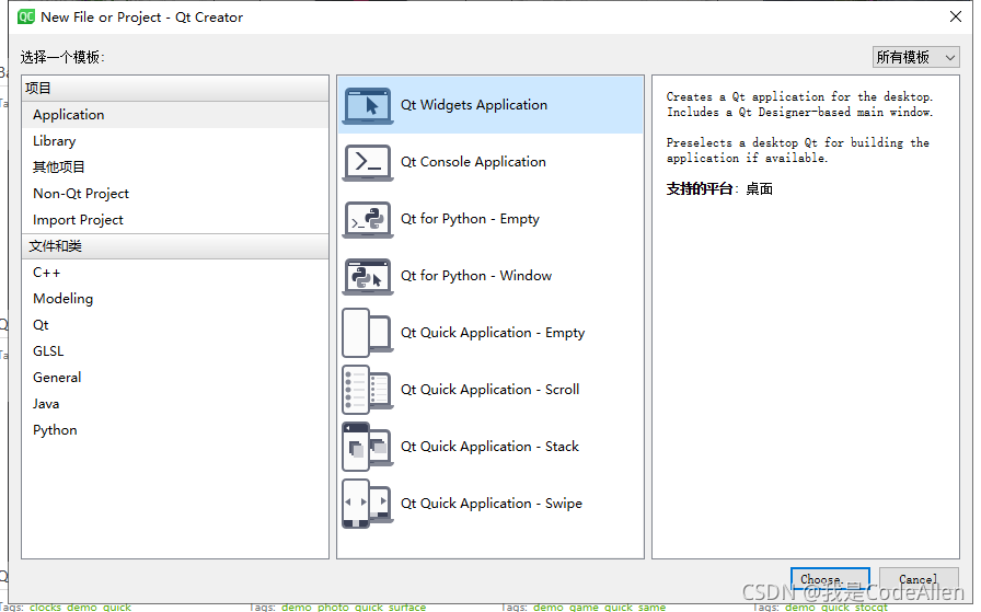 - Qt Widgets Application,支持桌面平台的有图形用户界面(Graphic User Interface,GUI) 界面的应用程序。GUI 的设计完全基于 C++ 语言,采用 Qt 提供的一套 C++ 类库。