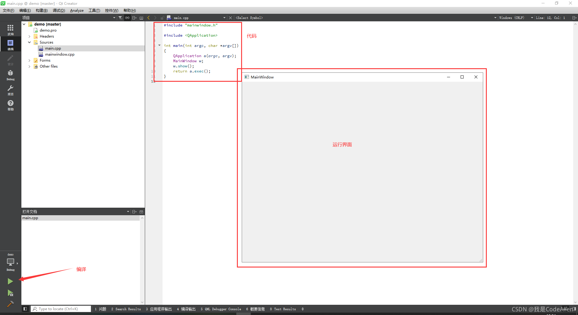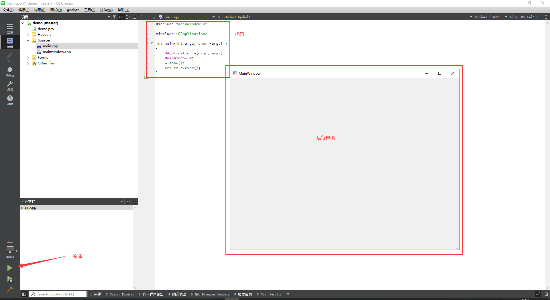 - QMainWindow 是主窗口类,主窗口具有主菜单栏、工具栏和状态栏,类似于一般的应用程序的主窗口;
