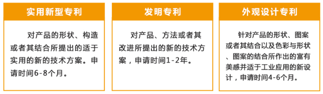如果申请人提供的是一项全新的设计,或在现有产品的内部结构和功能方面有所改进或各构件间的连接结构的改进,可选择申请实用新型专利(审批时间10-12个月左右);