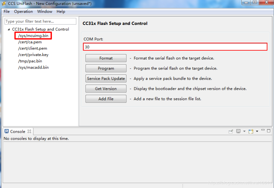 6)点击文件栏中的 CC31XX/CC3200 Flash Setup and Control