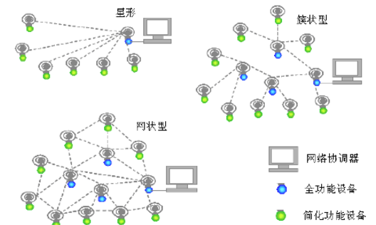 ZigBee 网络拓扑结构主要有星形网络和网型网络。