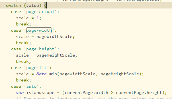 二、pdf.js打开的pdf文件默认宽度是自适应的,有时自适应宽度并不能满足所有pdf,所以我将其设置为了适合页宽