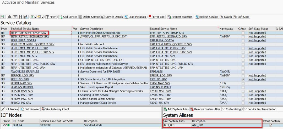 当然,为了跑这个demo,您需要在On-Premise系统使用事务码/iwfnd/maint_service,为EPM_REF_APPS_SHOP_SRV这个标准的OData服务指定一个后台系统。在我下图的例子里,该服务的后台实现系统我指定成了AG3。