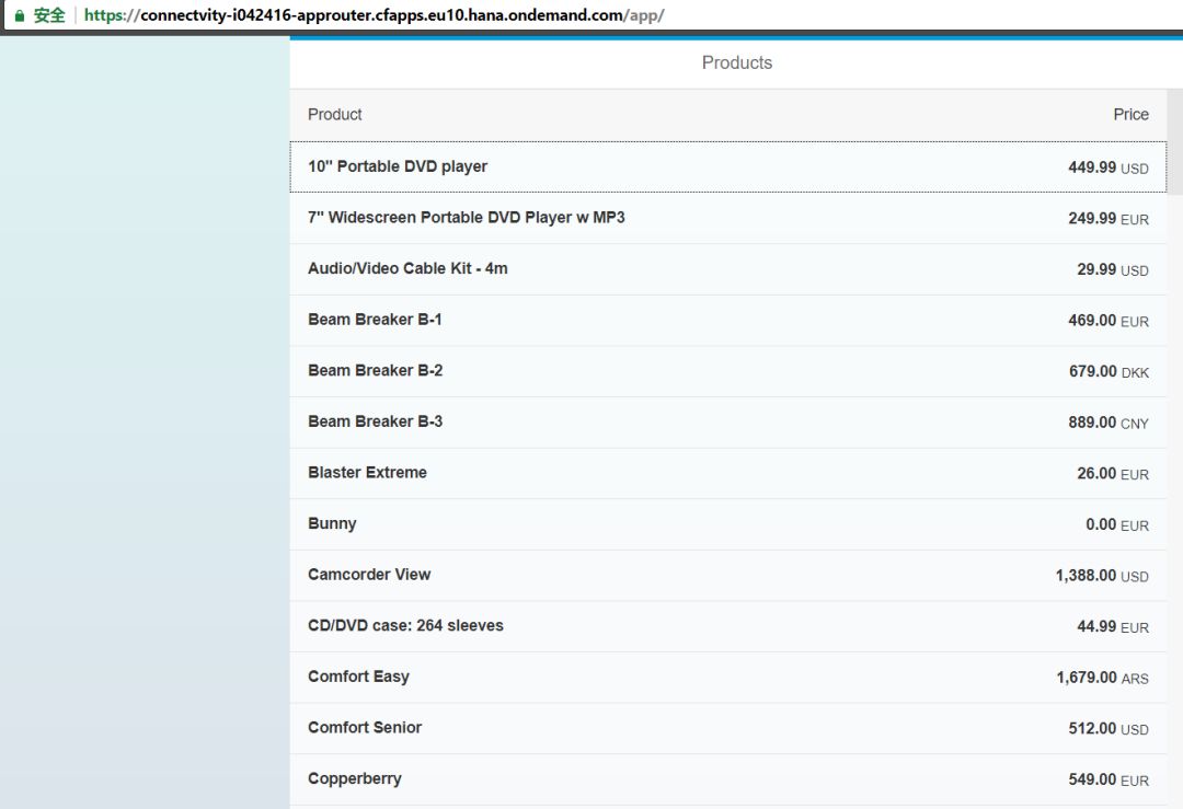 将两个应用部署到SAP云平台的CloudFoundry环境去,点击App Router作为访问的入口,能看到文章开头的产品列表页面。